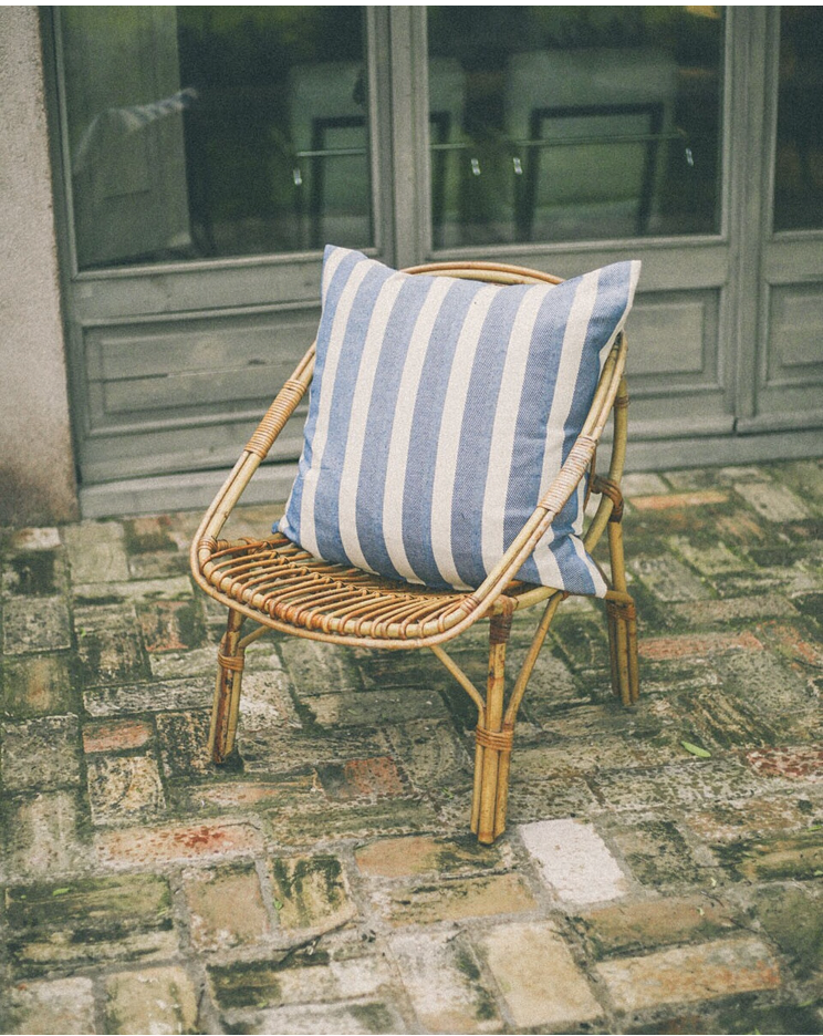 Descubre el encanto rústico y la autenticidad artesanal con nuestro cojín tejido a mano, una pieza perfecta para añadir confort y estilo a cualquier rincón de tu hogar. Este cojín está confeccionado con algodón 100% natural, destacando un diseño de franjas azules, que aportan un toque acogedor y hogareño.